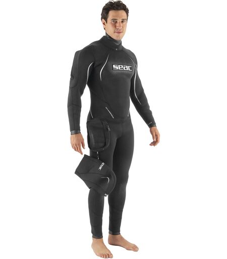 Muta da sub realizzata in neoprene ExtraFlex da 7 mm, morbido e impermeabile. Ginocchia, seduta e spalle protette da rinforzi in Supratex per una resistenza superiore. Ampia tasca tridimensionale con cerniera sulla gamba. Guarnizioni Smooth Skin su polsi e caviglie. Ideale per un uso intensivo. Seac Spacedry è una muta semistagna con cerniera posteriore orizzontale sviluppata per garantire sempre la massima protezione termica durante le immersioni in acque fredde e anche fuori dall´acqua.La tecnologia termica, infatti, oltre ad offrire la massima protezione termica, consente anche un´asciugatura molto rapida.Grazie alla fodera in nylon 300% Extraflex, SEAC Spacedry si distingue per la sua grande elasticità: la muta calza come un guanto per ogni tipo di corporatura.Sul lato destro è presente una pratica tasca tridimensionale con chiusura a zip.Il cappuccio separato è incluso nella confezione.Polsi, caviglie e collo sono in neoprene Smooth Skin ultra-elastico a doppio cono.Seac Spacedry è disponibile in 2 diversi spessori, 5 mm e 7 mm, con tagli specifici per uomo e donna. ...