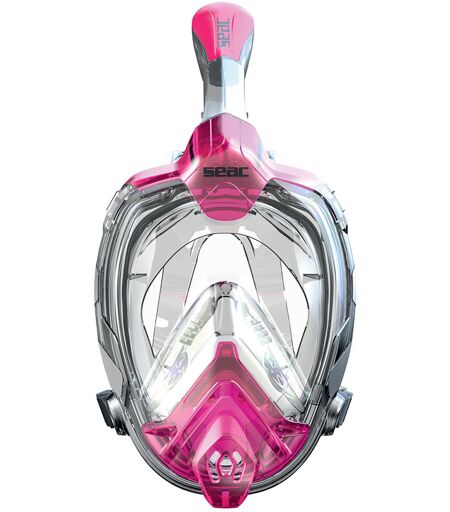 L’evoluzione della maschera full-face per snorkeling. Respirazione naturale con bocca e naso, con il più basso sforzo respiratorio della categoria. Circuiti completamente separati per aria fresca (IN) ed aria espirata (OUT), quest’ultima espulsa attraverso un circuito di scarico brevettato SEAC®. Sistema anti-appannamento garantito dal continuo flusso di aria in entrata. Valvole di non ritorno a sezione maggiorata, per una espirazione agevole ed efficace espulsione della CO 2 residua. Volume interno ridotto, ne consegue un campo visivo ancora più ampio e ottimizzazione di CO 2 residua. Grande facciale anatomico in silicone liquido ipoallergenico, geometria studiata per adattarsi a tutti le conformazioni dei visi, per garantire la massima tenuta, sicurezza e comfort. Snorkel con top dry per impedire l’ingresso dell’acqua dal tubo. Efficace sistema di spurgo dell’acqua tramite valvola di scarico nella parte inferiore.Strap in silicone con inserto costampato colorato. Doppia possibilità di regolazione dello strap sia nella zona frontale che inferiore. ...