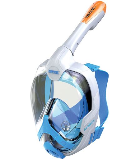 Magica è la maschera full face per snorkeling progettata e prodotta da SEAC®, che permette di scoprire il mondo subacqueo dalla superficie, respirando in modo naturale attraverso naso e bocca. Scarico dell’aria espirata con esclusivo sistema brevettato posizionato nella zona frontale per eliminare ogni sforzo espiratorio ed evitare rumori causati dalle valvole di scarico. Sistema di canalizzazione separata dell’aria inspirata e di quella espirata per evitare l’appannamento dello schermo. Snorkel con top dry per impedire l’ingressodell’acqua dal tubo. Schermo panoramico, con campo visivo a 180°. Facciale morbido ed ergonomico realizzato in elastomero termoplastico unito a un telaio in resistente policarbonato.Confortevole strap di trattenuta della maschera full face alla testa realizzato in tessuto elastico. Efficace sistema di spurgo dell’acqua tramite valvola di scarico nella parte inferiore del facciale. ...