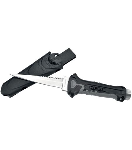 Seac Rapid Daga è il coltello subacqueo ideale per chi ama sia le immersioni con le bombole sia le uscite di freediving e pesca in apnea.Unisce infatti tutte le caratteristiche principali utili a entrambe le discipline.Seac Rapid Daga ha una lama ´´dag´´ in acciaio inox da 10,5 cm, con un filo liscio e l´altro seghettato per metà della lunghezza.Alla base dell´impugnatura è presente una piccola mazzetta in acciaio, molto utile per produrre rumore battendola sulla bombola e attirare l´attenzione degli altri subacquei.La lunghezza totale di Seac Rapid Daga è di 23,5 cm.Il fodero è rigido e consente di agganciare il coltello subacqueo da entrambi i lati.Il sistema di sgancio è costituito da un pratico bottone posto vicino all´attacco dell´impugnatura.È venduto con due cinturini che permettono di agganciare Seac Rapid Daga al braccio o al polpaccio.Il fodero presenta inoltre 2 asole che consentono di fissare il coltello alla cintura.Attenzione! Si raccomanda di sciacquare sempre con acqua dolce e di asciugare bene con del tessuto o carta assorbente sia il coltello sia il fodero separatamente dopo ogni uscita, anche se il coltello è stato solo indossato e non utilizzato, in quando il fodero non è stagno. ...