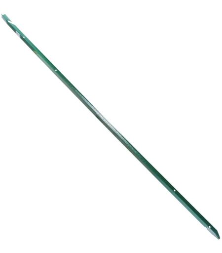 Palo metallico verde laccato per la recinzione di terreno, guida a V in cima al palo per il passaggio di filo di ferro per il fissaggio e la guida della rete o schermatura opaca. Estremità appuntita per una buona penetrazione nel terreno. 5 fori nel palo in metallo massiccio per il passaggio del filo di ferro per il fissaggio della rete. ...