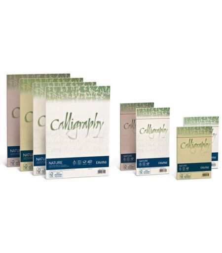 Favini Nature Calligraphy. Utilizzo raccomandato: Universale, Dimensioni foglio: A4 (210x297 mm), Fogli per pacco: 50 fogli. Certificati di sostenibilità: Forest Stewardship Council (FSC), Non contiene: Acido ...