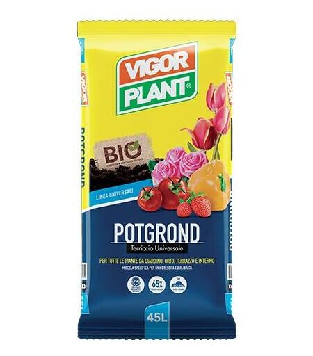 TERRICCIO UNIVERSALE (POTGROND - VIGOR PLANT) (pallet da 42 sacchi da 70 lt). Terriccio di alta qualità pronto all’uso, ideale per tutti gli utilizzi; rinvaso, semina e trapianto. La sua composizione equilibrata si adatta a tutti i tipi di piante verdi, fiorite, erbacee, arbustive e legnose. L’alto contenuto in elementi nutritivi garantisce una crescita vigorosa di tutte le specie vegetali. ANALISI CHIMICA MEDIA Carbonio (organico): s.s. 20%; Azoto (N) (organico): s.s. 0,5%; Sostanza organica:40%. CARATTERISTICHE TECNICHE pH (H 2 O): 6,0 - 6,5; Umidità: 45 - 65% Porosità totale: 80%; Acqua facilmente disponibile: 25%; Acqua fraz. volume a pFI: 60%; Aria fraz. volume a pFI: 20%; Salinità: 1,0 - 1,2 dS/m. CARATTERISTICHE FUNZIONALI E CAMPI DI UTILIZZO Terriccio, ideale per: • rinvasi, talee, semina, orto e giardinaggio. NB: DISPONIOBILITA' DEL MATERIALE Il materiale è soggetto a disponibilità, viene solitamente prelevato fresco di produzione e spedito al cliente al fine di avere sempre ...