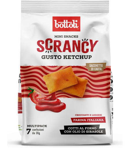 Uno snack irresistibile, dal sapore deciso, per accompagnarti nelle pause della giornata, al lavoro, a scuola, ma anche nel tempo libero. Gli Scrancy al gusto Ketchup sono leggeri e croccanti, grazie ad un'accurata lavorazione e ad una lenta cottura al forno, fatti di pochi e semplici ingredienti, con olio di girasole. Adatti a tutta la famiglia, sono una vera e propria tentazione! Puoi presentarli come stuzzichini-snack in occasione dei tuoi aperitivi con gli amici oppure gustarli per un leggero break in ogni momento della giornata. Caratteristiche: senza olio di palma, con olio di girasole, cotti al forno. Lo sapevi che: l'olio di girasole alto oleico ha molteplici proprietà: è ricco di acidi grassi omega 9, contiene sali minerali, è un ottimo antiossidante ed è ideale per il benessere quotidiano. Qualche informazione in più: la pratica confezione-scorta multipack contiene 7 confezioni monodose da 30g. ...
