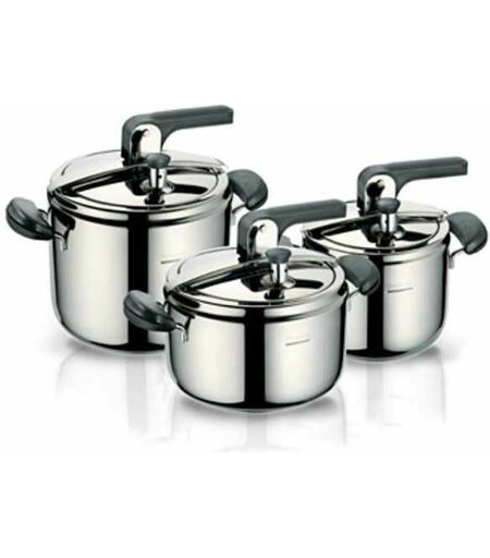 Corpo acciaio inox 18/10 Valvola esercizio regolabile e valvola sicurezza Dispositivo controllo chiusura Segnalatore di pressione Adatta per tutte le fonti di calore ...