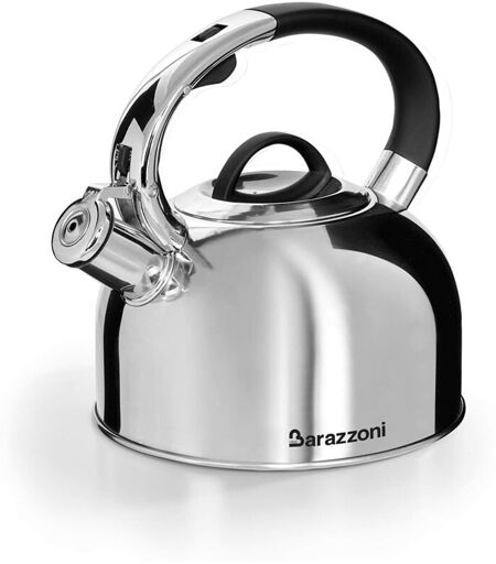 NONE Barazzoni Bollitore, Acciaio Inox 18/10 Lucido, Induzione+Gas, Beccuccio dosatore, Fischio nel tappo, Ampio coperchio apribile