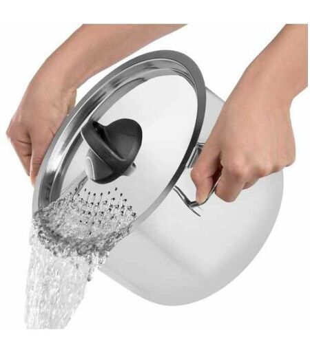 Corpo e manici acciaio inox 18/10 Coperchio semiforato con chiusura a baionetta Permette di scolaree condire nella pentola Adatta per fonti calore elettriche, gas e ceramica Lavabile in lavastoviglie Garanzia 2 anni ...