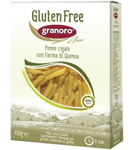 granoro Il Primo Penne rigate senza Glutine con Farina di Quinoa Ingredienti Farina di mais, farina di riso, farina di quinoa (3%), emulsionanti: mono e di gliceridi degli acidi grassi Valori medi per 100 g Valore energetico Grassi - di cui acidi grassi saturi Carboidrati - di cui zuccheri Fibra al… ...