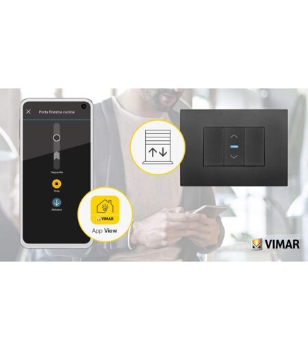 VIMAR 19594 Arké Comando connesso view Wireless con uscita a relè, per tapparella con lamelle orientabili, controllo da remoto, doppia tecnologia Bluetooth