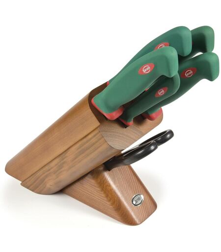 Ceppo obliquo in tinta ciliegio 6 pezzi comprese forbici da cucina linea Premana Professional di Sanelli