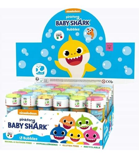 BABY SHARK Bolle di sapone 60 ml Un divertimento assicurato per tutti i bambini nelle giornate di sole, durante il bagnetto, le feste di compleanno e per il divertimento quotidiano. Prodotto in Italia. Il prezzo è per 1 confezione. ...