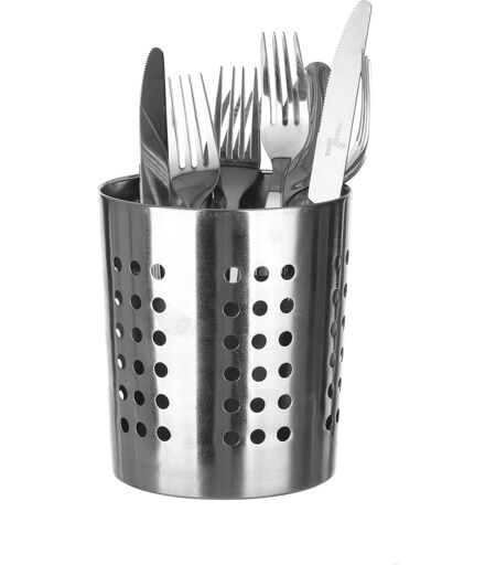 Lo scolaposate della linea Ideale di IPAC è un pratico accessorio da cucina dalla forma circolare e realizzato interamente in acciaio inox. Grazie alla struttura con fori laterali, permette di far scivolar via l'acqua dalle posate e da piccoli utensili appena lavati a mano, senza il bisogno di doverli asciugare per riutilizzarli nuovamente o per riporli nel cassetto. Utile e pratico da pulire, può essere lavato in lavastoviglie. Diametro 12 cm, altezza 14 cm. ...