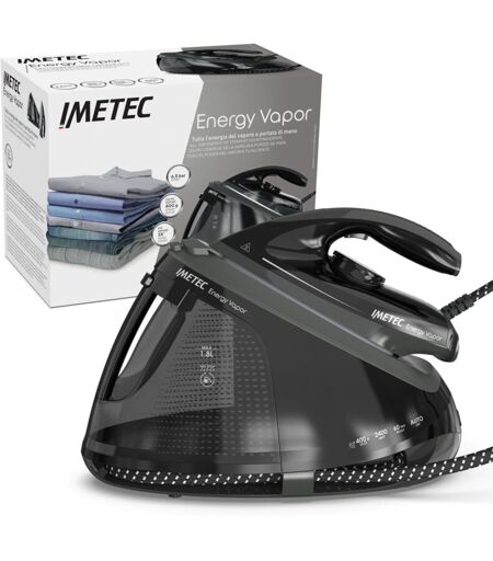 Imetec Energy Vapor, Ferro da Stiro con Generatore di Vapore, 6.5 bar Pump, Colpo Vapore 400 g, 2400 w, Piastra Fluid Ceramic, Bloccaferro, Autospegnimento,