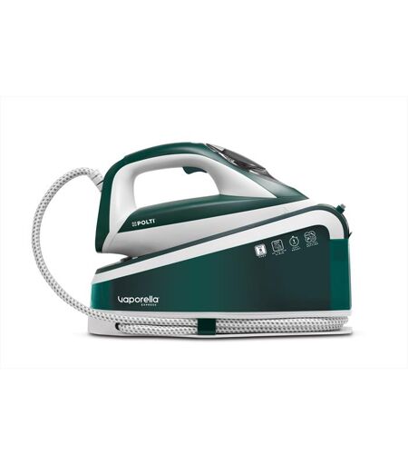 Vaporella Express è il ferro generatore di vapore ad alta prestazione e ad autonomia illimitata fino a 8 bar della pompa che permette di stirare in modo rapido e semplice, risparmiando tempo e senza rinunciare alle prestazioni. La sua tecnologia ONE TEMPERATURE è ideale per tutti i tessuti e i comandi digitali DIGITAL SETTING sull’impugnatura del ferro consentono di stirare in modo immediato e veloce avendo sempre sotto controllo la fase della stiratura in cui ci si trova. Il colpo di vapore da 240 g/min distende anche le pieghe più ostinate, la funzione ECO permette di ridurre in maniera significativa i consumi di elettricità e di acqua e il ciclo di pulizia Calc Cleaning mantiene le prestazioni e l’efficienza dell’apparecchio. ...