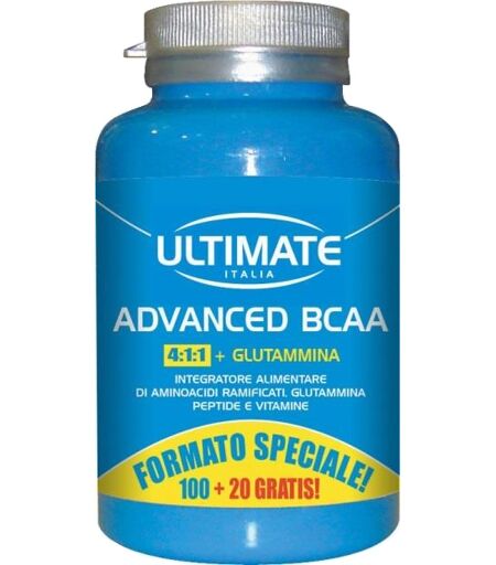 ULTIMATE - ADVANCED BCAA - Descrizione Integratore che fornisce aminoacidi ramificati BCAA (leucina - isoleucina - valina) nel rapporto 4:1:1. Potenziato con glutammina per favorire un pronto recupero e con vitamina B6 per favorire maggiore energia e una migliore assimilazione dei principi attivi. … ...