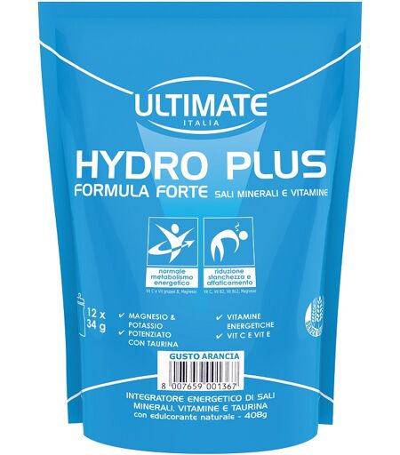 ULTIMATE - HYDRO PLUS - FORMULA FORTE - Descrizione Integratore alimentare di magnesio e potassio ad assorbimento rapido altamente assimilabile dall'organismo. Arricchito con vitamina C vitamina E taurina per favorire maggiore energia fisica e mentale. Gusto arancia. Ingredienti Destrosio acidi… ...