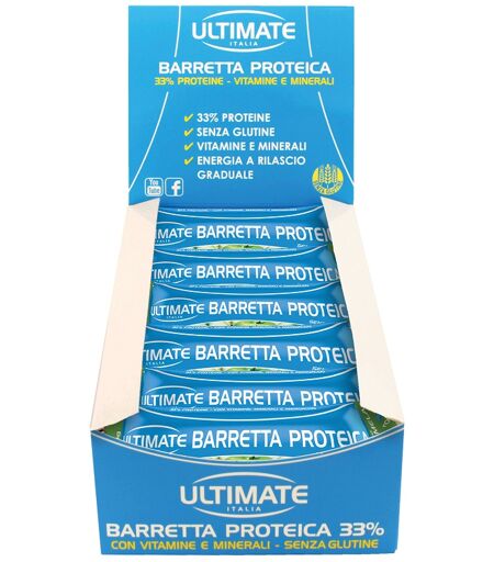 ULTIMATE - BARRETTA PROTEICA - Descrizione Snack proteico ed energetico, comodo in ogni momento della giornata: a colazione, come spuntino, prima e/o dopo lo sport. Inoltre, 2 barrette potrebbero essere utilizzate come pasto ipocalorico. Ingredienti Proteine del latte concentrate, sciroppo di gluco… ...