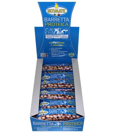 ULTIMATE - BARRETTA PROTEICA - Descrizione Snack proteico ed energetico, comodo in ogni momento della giornata: a colazione, come spuntino, prima e/o dopo lo sport. Inoltre, 2 barrette potrebbero essere utilizzate come pasto ipocalorico. Ingredienti Proteine del latte concentrate, sciroppo di gluco… ...