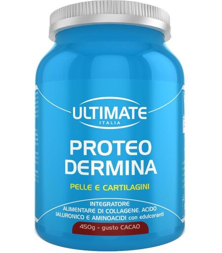 ULTIMATE PROTEO DERMINA - Descrizione Integratore alimentare di collagene, acido ialuronico, arginina, glicina e lisina. Contiene, poi, vitamina C che contribuisce alla normale formazione del collagene per la normale funzione della pelle e delle cartilagini, alla protezione delle cellule dallo stre… ...