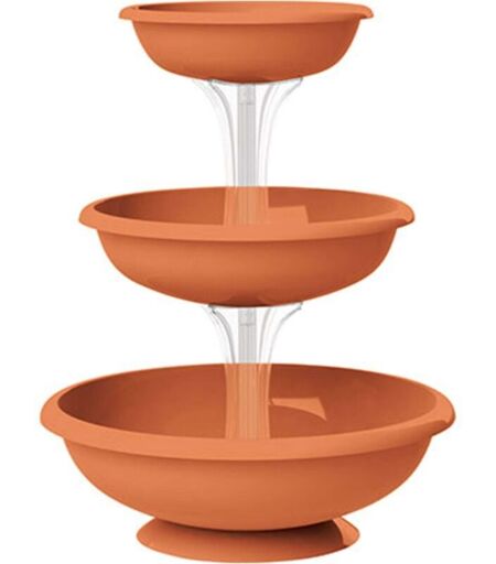 In polipropilene. Colore terracotta. Composta da tre ciotole rispettivamente del diametro di Cm. 30, 40 e 50. Ideale sia da interno che da esterno. Si monta facilmente senza l'ausilio di attrezzi. Capacità totale Lt. 29. ...