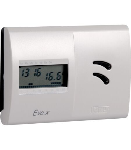 Il cronotermostato da parete Vemer Evo-X unisce praticità, estetica e funzionalità per garantirti un controllo ottimale della temperatura nella tua casa. Grazie alla sua programmazione settimanale, puoi personalizzare gli orari di riscaldamento o raffreddamento in base alle tue esigenze, assicurandoti comfort e risparmio energetico. Caratteristiche principali: Programmazione settimanale: Offre la comodità di impostare gli orari di funzionamento durante la settimana, adattandosi al tuo stile di vita e garantendo la temperatura ideale nei momenti giusti. Estetica curata: La tastiera è elegantemente nascosta sotto uno sportellino, contribuendo a un aspetto raffinato e pulito sulla tua parete. Funzionamento estivo/invernale: Passa senza sforzo dal riscaldamento al raffreddamento con la funzione di commutazione tra stagioni. Regolazione della temperatura ON-OFF e proporzionale: Offre la possibilità di scegliere tra due modalità di regolazione della temperatura, ON-OFF o proporzionale, per soddisfare al meglio le tue preferenze e necessità di comfort. Funzionamento automatico o manuale: Scegli tra il funzionamento automatico, in cui il cronotermostato seguirà la programmazione settimanale, o il funzionamento manuale, in cui potrai regolare la temperatura in modo immediato. Intervallo impostabile: Imposta l`intervallo di funzionamento desiderato, con un minimo di 1 ora, per avere un controllo ancora più preciso della temperatura. Alimentazione a batterie: Il cronotermostato funziona con 3 batterie da 1,5 V di tipo AAA, eliminando la necessità di cablaggi complessi e permettendoti di installarlo senza problemi ovunque tu desideri. Con il cronotermostato da parete Vemer Evo-X, puoi gestire in modo semplice ed efficace la temperatura della tua abitazione, adattandola alle tue esigenze e preferenze. ...
