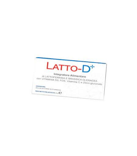LATTO - D+ - Descrizione Integratore alimentare di lattoferrina e Brassica oleracea (8% sulforafano) con vitamina C, FOS, vitamina D3 e zinco gluconato indicato per fornire un apporto supplementare in caso di carenza o accresciuto fabbisogno. La Brassica oleracea agisce nella normale funzione antio… ...