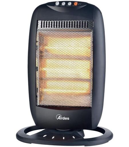 Codice: 454B Marca: ARDES. Stufa alogena con 3 elementi riscaldanti. 3 livelli di potenza selezionabili individualmente: 400/800/1200W. Oscillazione orizzontale. Maniglia per facile trasporto. Interruttore anti ribaltamento. Potenza 1200W. Colore nero. Resa 40 m³. ...