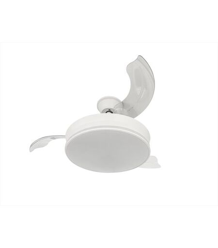 Ventilatore da soffitto Ø 92 cm. 3 pale retrattili trasparenti. Motore brushless DC. 6 velocità. Luce LED 2.200 Lumen. Temperatura di colore regolabile da luce calda 3.000K a luce fredda 6.000K. 3 CCT preimpostate. Luminosità regolabile (dimmer integrato). Rotazione reversibile (estate/inverno). Funzione brezza naturale. Timer 1h/2h. Installazione semplice. Telecomando. ...
