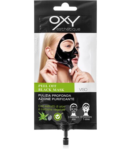 Maschera viso purificante con carbone e aloe vera. Caratteristiche Oxy Peel Off Black Mask è una maschera viso purificante che agisce delicatamente sulla pelle, garantendo una pulizia profonda. La sua formula arricchita con ingredienti efficaci e delicati, carbone vegetale e succo di aloe vera, dona alla pelle un effetto purificante, lenitivo e tonificante. Grazie alla sua scorrevolezza la Black mask si adatta facilmente alla superficie della pelle trattenendo sebo in eccesso, impurità e punti neri. Una volta rimossa dal viso lascia la pelle levigata e omogenea, donandole tono e morbidezza assoluta. Consigli d'uso Applicare uno strato di maschera sulla pelle del viso asciutta e pulita evitando contorno occhi e labbra. Aiutarsi con la spatolina per formare uno strato omogeneo. Lasciare agire per circa 20/30 minuti o comunque fino a completa asciugatura. Rimuovere delicatamente la maschera staccando il film dal basso verso l'alto. Eliminare eventuali residui con acqua tiepida. Inci Aqua (Water/Eau), Polyvinyl Alcohol, Alcohol Denat., Glycerin, Carbon Black, Aloe barbadensis Leaf Juice, Parfum (Fragrance), Hamamelis virginiana (Witch Hazel) Leaf Water, Xanthan Gum, Citric Acid, Benzyl Alcohol, Hexyl Cinnamal, Geraniol, Hydroxycitronellal, Alpha-Isomethyl Ionone, Limonene, Coumarin. Formato Sacchetto da 20 ml. ...