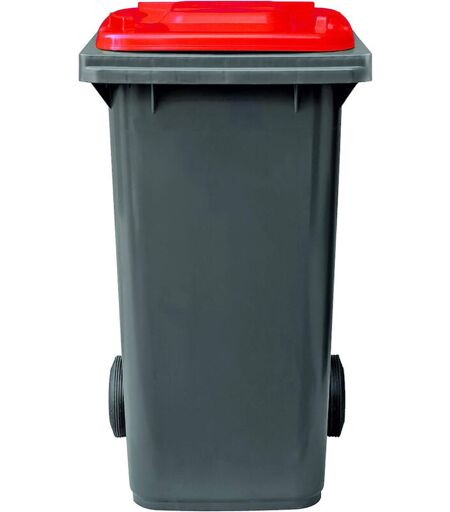MOBIL PLASTIC Bidone carrellato grigio coperchio rosso pattumiera per raccolta differenziata rifiuti 120 Lt con ruote