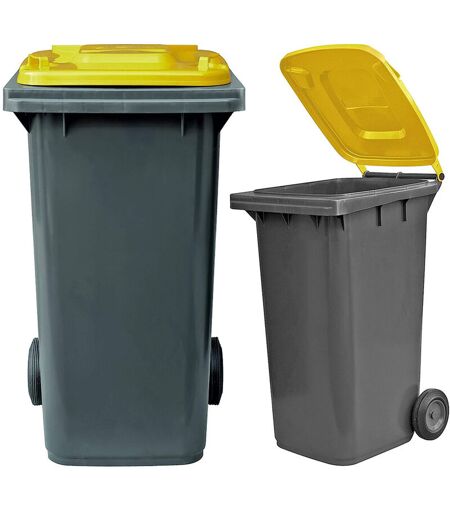 MOBIL PLASTIC Bidone per la raccolta differenziata grande 240 lt condominio hotel ristoranti certificato UNI EN840 per rifiuti e riciclo giallo