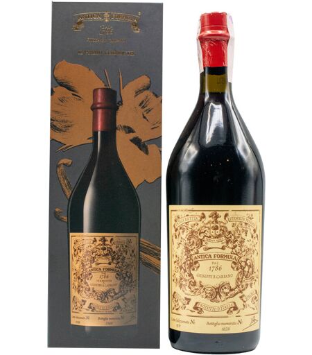 Il Vermouth ''Antica Formula'' Carpano è prodotto a partire da vini bianchi provenienti da selezionati vitigni italiani di Romagna, Puglia e Sicilia, lavorati entro le 24 ore successive al loro ricevimento, per evitarne l'ossidazione. L'estrazione delle numerose piante aromatiche avviene attraverso infusione a caldo o estrazione a freddo, a seconda della materia prima, seguendo i metodi tramandati nei secoli che costituiscono, insieme alla formula, il segreto di questo prodotto. Lo zafferano utilizzato in Antica Formula è di elevata qualità proveniente soprattutto dagli altipiani dell'Iran e si presenta in stimmi interi privi di impurità. Questo ingrediente è noto per le proprietà antiossidanti e per la sua preziosità: per ottenerne un chilogrammo occorre raccogliere, a mano gli stimmi di circa 150.000 fiori. In Persia era usato come afrodisiaco. Bottiglia 100 cl ...