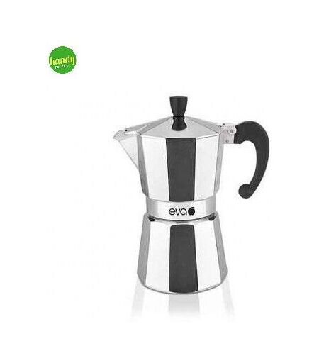 Caffettiera 3 tazze prodotta dal brand Eva. Moka Evain alluminio alimentare. Pomolo e manico ergonomico neri. Guarnizione in silicone, igienica, facile da pulire e resistente al calore. ...