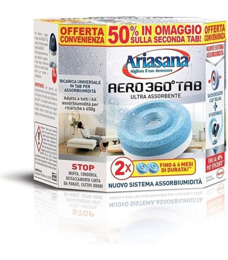 ARIASANA RICARICHE AERO ASSORBI UMIDITÀ 2 X 450 GR INODORE Elimina muffe, condense e cattivi odori, i cristalli attivi sono ultra assorbenti e assicurano un'azione efficace contro l'umidità. La tecnologia anti-odore brevettata neutralizza i cattivi odori senza mascherarli ed assicura una riduzione degli odori fino al 70%. Pastiglie adatte a tutti i kit assorbiumidità per ricariche da 450 gr. Confezione da 2 tab 50 % omaggio sulla seconda tab Adatta a tutti i kit assorbiumidità 2 tab durano fino a 6 mesi Ultra assorbente Profumo inodore ARIASANA RICARICHE AERO ASSORBI UMIDITÀ 2 X 450 GR INODORE Elimina muffe. condense e cattivi odori. i cristalli attivi sono ultra assorbenti e assicurano un'azione efficace contro l'umidità. La tecnologia anti-odore brevettata neutralizza i cattivi odori senza mascherarli ed assicura una riduzione degli odori fino al 70%. Pastiglie adatte a tutti i kit assorbiumidità per ricariche da 450 gr. Confezione da 2 tab 50 % omaggio sulla seconda tab Adatta a ...