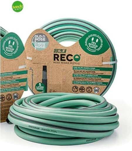 GF Garden tubo irrigazione Reco Tubo riciclato al 75%. Prodotto con la tecnologia Foamed Technology che crea una struttura Ultramemory che ritorna sempre alla sua forma originale senza subire deformazioni, questa caratteristica rende difficile lo terrazzamento totale del tubo in caso di grovigli , il tubo è più leggero, più morbido e più performante. Sistema TNT TricoflexNon Torsion evita le torsioni e i nodi garantendo un flusso costante d'acqua. Superficie esterna Soft Touch che migliora la presa del prodotto durantel'uso in giardino e la resistenza all'abrasione su superfici ruvide. Realizzato inoltre senza elementi contaminanti (Cadmio, Bario e Piombo). internodi colore nero resistente ai raggi UV e quindi antialghe. Le foto sono ascopo illustrativo e potrebbero essere differenti rispetto al prodotto venduto. ...