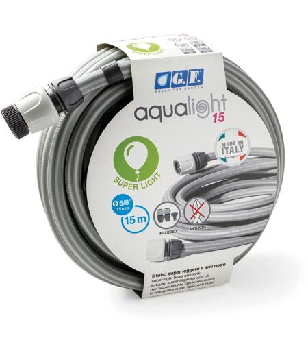 AquaLight è il tubo innovativo, superleggero e antinodo. Leggero e maneggevole. Struttura anti piega ed anti torsione. Resistente e flessibile anche a basse temperature. Facile da arrotolare e riporre. Semplice da riparare in caso di tagli o forature. Più leggero fino a 3 volte rispetto ad un tubo tradizionale. Tubo 100% riciclabile, con smaltimento nella plastica (esclusa accessoristica). Il kit è completo di: - Tubo 15m 5/8" - raccordi portagomma a scatto - presa rubinetto 3/4" ...