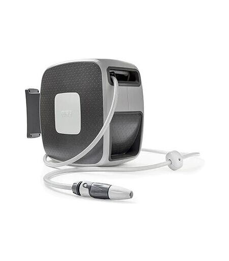 Fissato a parete, permette di riavvolgere automaticamente e comodamente il tubo senza sforzo. Orientabile a 180° grazie alla staffa a muro. • 35 m di tubo rinforzato da ½”; • Raccordo portagomma ACQUASTOP da ½” SOFT TOUCH; • Lancia regolabile media; • Kit di collegamento al rubinetto: 1.5 m di tubo rinforzato da ½”, Raccordo portagomma da ½” SOFT TOUCH, presa rubinetto. • Kit 3 cover colorate (Lime, Grey, Salvia) ...