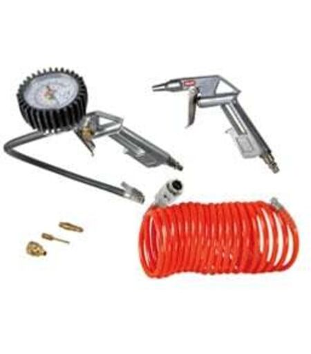 Questo Kit di accessori pneumatici della Valex è uno di quei prodotti che riteniamo indispensabili per poter utilizzare il compressore al meglio con accessori basilari , facili all’utilizzo , che vi permetteranno di effettuare tanti piccoli lavori nella vs. casa. Il kit comprende: Pistola con manometro per gonfiaggio Pistola per soffiaggio Tubo spiralato 5 m con terminali a baionetta e raccordo rapido 3 ugelli per gonfiaggio ...