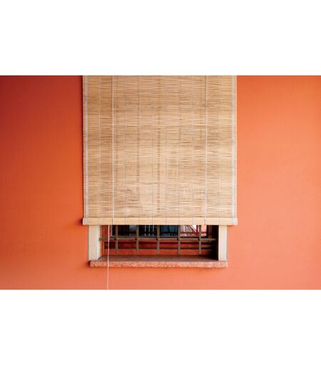 Tapparella in cannette di bamboo arrotondate in colore , munito da top in legno dove sono presenti i ganci per il fissaggio. Arrotolamento a carrucola, ganci di ancoraggio in metallo. ...