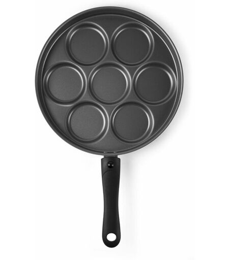 Padella 7 scomparti, materia padella in alluminio antiaderente con 7 cerchi, manico removibile, diametro: cm. 28, spessore: mm.2, ideale per pancake, frittatine e tutto quello che la tua fantasia consiglia, utilizzabile anche in forno, lavabile in lavastoviglie, non utilizzabile su induzione. ...