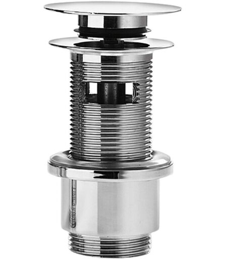 Questa piletta è regolabile in altezza nel range 0-70 mm ed è realizzata in ottone cromato. Il sistema click clack ti permette di aprire e chiudere lo scarico con una leggera pressione manuale sulla superficie, mentre il troppopieno lascia defluire l'acqua quando rileva che questa ha raggiunto il livello massimo. ...