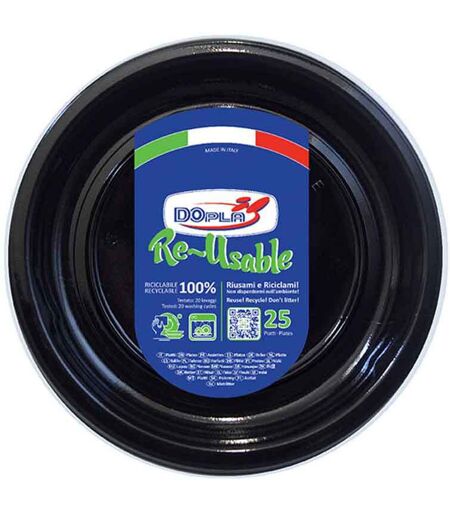25 Piatti Di Plastica Colorati Lavabili Riutilizzabili Neri Ø22 Cm Dopla