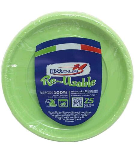 25 Piatti Di Plastica Colorati Lavabili Riutilizzabili Verde Acido Ø22 Cm Dopla