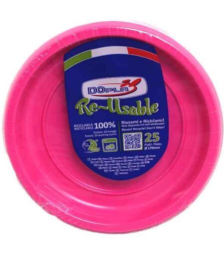 25 Piattini Di Plastica Riutilizzabili E Lavabili Fucsia Ø17 Cm Dopla