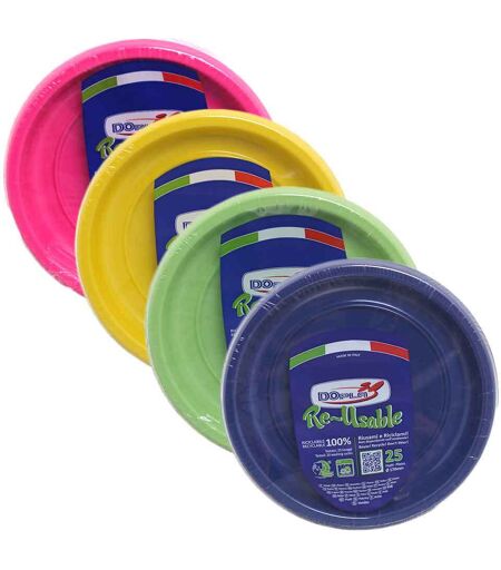 25 Piattini Di Plastica Riutilizzabili E Lavabili Colorati Ø17 Cm Dopla