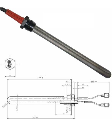 RESISTENZA CANDELETTA ACCENSIONE STUFA A PELLET PALLADIO - 250 WATT L.145MM ...