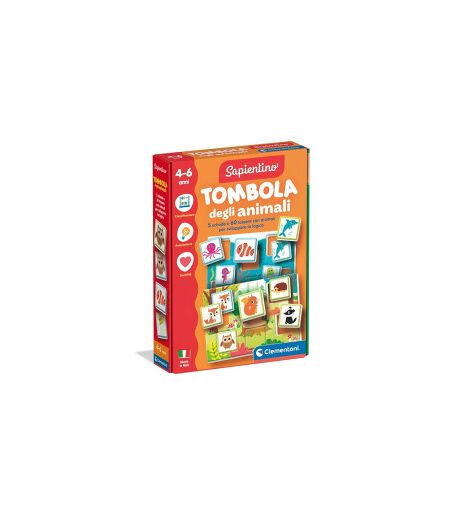 LA TOMBOLA DEGLI ANIMALI: un gioco educativo e divertente che stimola le capacita' di osservazione e associazione dei bambini; simpatiche illustrazioni portano i piccoli giocatori alla scoperta degli animali. IMPARARE GIOCANDO: la tombola degli animali unisce l'emozione del gioco classico con attivita' che rafforzano le capacita' linguistiche, logiche e cognitive, aiutando a distinguere e associare immagini attraverso un'esperienza coinvolgente e educativa. COME GIOCARE: i bambini devono osservare e selezionare le tessere degli animali per completare le 5 schede ambienti, sviluppando concentrazione e memoria; un gioco semplice e intuitivo che permette di esplorare il mondo degli animali divertendosi. COSA CONTIENE: gioco educativo Made in Italy, adatto per bambini dai 4 ai 6 anni, include 5 schede ambienti, 60 tessere con immagini di animali e una guida al gioco che facilita l'apprendimento attraverso il divertimento. CLEMENTONI SAPIENTINO: divertenti giochi educativi su animali, parole, numeri, colori e emozioni, per stimolare e supportare il bambino durante la crescita, offrendo strumenti per un apprendimento efficace e interattivo in ogni fase dello sviluppo ...