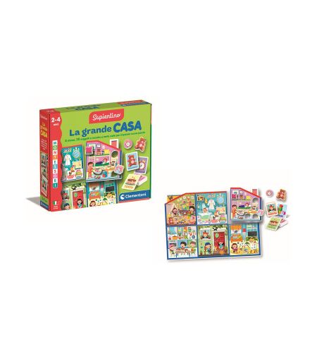 Un gioco educativo ispirato al metodo Montessori, per sviluppare logica e manualita'. La confezione contiene un grande puzzle-casetta con 6 stanze in cui incastrare 30 oggetti sagomati. Inoltre, include un mazzo di 33 carte con immagini e parole, utili per sviluppare il linguaggio. I bambini dapprima ricompongono il puzzle associando gli oggetti alle stanze giuste, poi sovrappongono gli oggetti alle carte con le parole. Ideato, progettato e sviluppato in Italia. ...