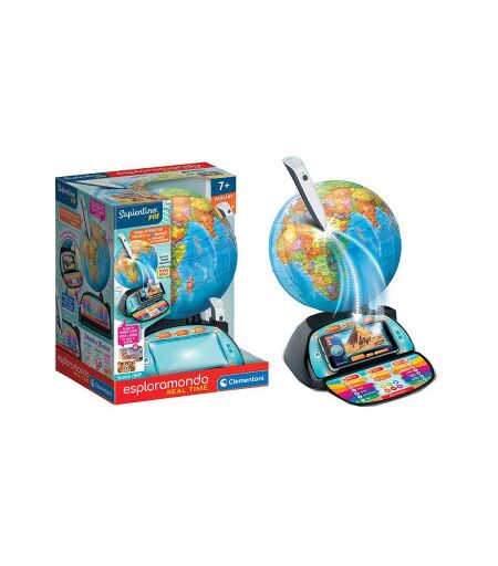 Il nuovo Esploramondo Real Time e' ricco di informazioni e curiosita' per apprendere la geografia in modo innovativo e divertente! Con la penna wireless scopri tutto su: Continenti, Capitali, Superficie, Flora, Fauna, Inni Nazionali, Lingue, Storia, Tipicita', Curiosita', Piatti Tipici e Distanze fra capitali e punti d'interesse. Basta scaricare l'App per conoscere in tempo reale cosa accade nel mondo attraverso a video, foto e informazioni sempre aggiornate! Per esplorare, scoprire e imparare informazioni e curiosita' di ogni paese: 59 luoghi di interesse e 195 paesi, piu' di 5 ore di contenuti e 28 attivita' di gioco! Questo gioco educativo unisce il fascino del classico mappamondo all'interattivita' delle nuove tecnologie. La cartina specifica della nazione si arricchisce di informazioni e curiosita' per poter svelare le caratteristiche geografiche piu' importanti da apprendere. Con la modalita' "Avventure", scegli il mezzo di trasporto piu' avvincente tra nave, aereo e macchina. Segui gli indi zi e rispondi ai quiz rompicapo. Sviluppa capacita' logiche e di osservazione, conoscenza e comprensione del mondo, competenze tecnologiche, creativita' e memoria. ...