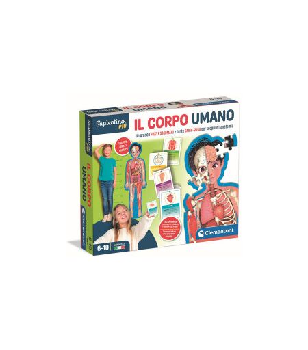 Dopo aver ricomposto il grande puzzle, il bambino puo' giocare con le carte, scoprire tante curiosita' sugli organi e le parti dello scheletro e sfidare amici e famiglia con quiz e giochi di osservazione. Con gli organi sagomati si possono svolgere gare di velocita': prendi per primo il cuore e guadagna la tessera! Vince chi ne prende di piu'! Il puzzle e' alto circa 1 metro! Made in Italy ...